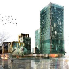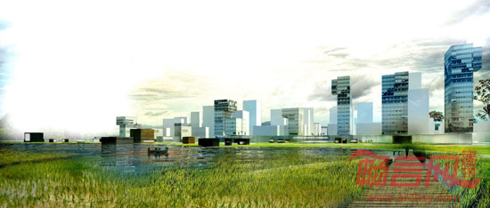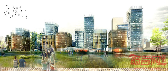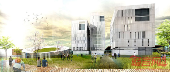 我们的规划通过导入各种商业、社区交流设施、SOHO元素,强化了生活轴和主要道路的活力。“栈桥”概念的引入充分利用了南侧公园及中央水系资源,将景观视线最优最大化;指形结构的创意使办公平面两两一组,适当错开,令所有楼栋实现南侧无遮挡,打造无敌视线与景观;办公平面模块标准化、形体方正,立面结合平面进行有序组合变化。