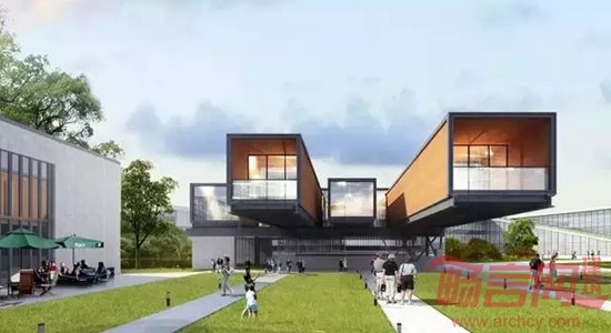 生态科技区分散在公园内部的产业园建筑和景观结合在一起,打造花园式的办公空间,实现公园、办公、花园的融合,中央景观绿化结合水系打造雨水花园,营造出生态的办公环境。