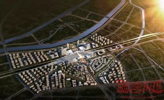 枢纽地区规划结构采用一心、一轴、一环、一带、四大片区,即以高铁站为核心,横贯城市南北向发展轴,围绕高铁枢纽区的景观绿环、以及北侧沿林洪大道防护绿地,形成沿路带状绿化,覆盖四大片区:站前商务综合片区、配套服务综合片区、滨水休闲商业片区、生活居住片区。
