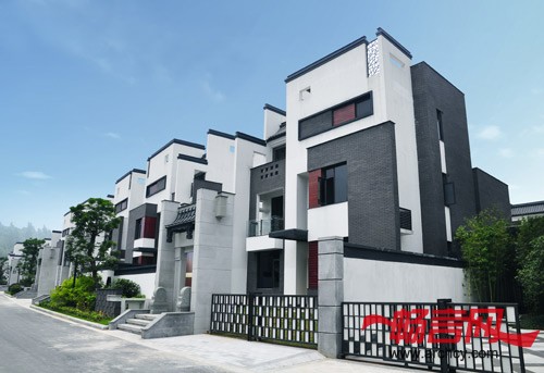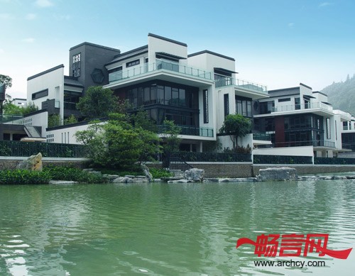别墅区由于建筑类型的特点,对私密性的要求较高,但作为一个小区,在不影响私密性的情况下,适当规划相应的开放空间,将有利于小区整体品质的提升。本设计规划了以“主轴(开放空间)---副轴(半开放空间)---组团小庭园(半私密空间)”为骨架的开放空间系统,该系统从开放到私密,层次丰富,动静相宜,保证了小区的公共空间品质,同时又充分照顾到私密性。整个开放空间系统借鉴中国古典居住模式与园林空间,将中国古典空间意念与现代居住模式结合——主轴(经)线被设计成具有徽派民居特点的“水街”,五条副轴线(脉络)各有特色,别墅之间的院落被设计成具有中国古典园林特色的精致园林,园林周边的别墅均能从客厅到达园林,增进住户之间邻里交往的机会,在现代社会冷漠的人与人之间的关系之中,提供一片富有人情味、文化味的的净土,创造出富有特色的现代东方居住区。
