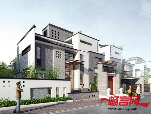现代规划条件下对古村“随机美”建筑群体的复活。中国建筑的美,往往不在于建筑的单体,而在于建筑的群落,徽州的古村落,便是建筑群体美典型的例子。宏村、西递等古村落是经过漫长的时期形成的,具有现代规划所不具有的“随机”,建筑因应地形,因地制宜,局部的冲突却难掩整体的和谐。在现代规划条件下,往往难以做到这一点。统一规划的产品,往往过于严谨。本设计通过设置院墙和廊道的元素,尽量形成和地形吻合的体形,增加了建筑群落的随机性。一定程度复活了古村落的“随机美”。