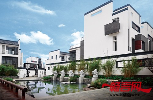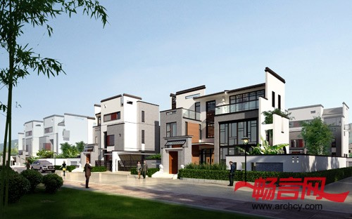 本期规划的车流设计实现了每户汽车直接进入私家车库。独栋别墅的汽车通过组团内的车行环路,可直接进入私家车库D组团采取了四面围合庭院的结构,汽车由组团的三面入户,避免了车流对内庭院的影响。E组团汽车入户方式采取由组团南北分别进入私家车库,从而为“水街”留出了极富中国传统韵味的步行街道空间,实现了人车分流。
