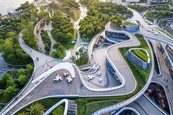 国际公司Laguarda.Low Architects一直在以其横跨宝安华侨城吴湾逐渐改变深圳的海滨。这个占地128英亩的项目横跨四分之三英里的场地,分为三个部分:文化公园、城市商业中心和东西部的零售公园。该团队在北京、东京和纽约都有分支机构,他们指出,该项目尊重中国城市作为集镇的历史。项目的特点是有许多流动的层次,多层次交织在一起,形成一个流动的新景观。