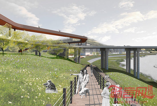 设计目的:随着苍溪对新城区发展愿景的进一步实现,打通新城及老城间的区域连接空间成为苍溪城市整体发展不可忽视的问题。联城公园的设计力图将新城,老城及各景区串联起来。公园内会提供充足的便民设施及文化小景,加强市民和游客行走的舒适性及趣味性。