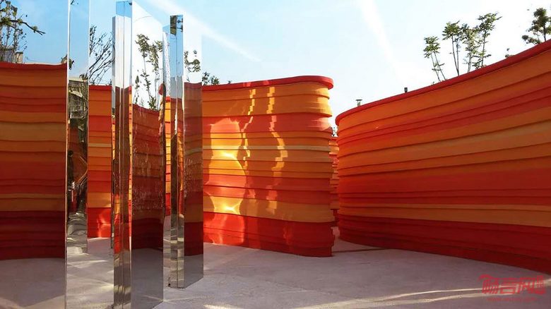 虽然表达的是垃圾沉淀的概念,但是设计采用了阳光般温暖的橙黄色来唤醒整个昏暗的下沉空间,希望透过亮丽色彩狭长幽谷的空隙中看到湛蓝天空的微光,让阳光穿越峡谷的缝隙印射在厚重的土地阴影中。用温度、光影和触感唤醒人们最真实的感官体验,从而使天空和土地跨越空间的屏障进行一次深刻的对话。即使是环境污染这样沉重的话题,还是能让人对未来充满温暖的希冀。