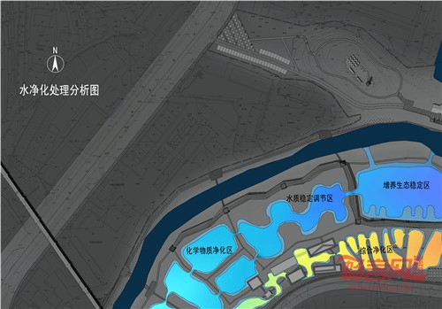 场地内水资源丰富,运河、渔塘以及丰富的乡土植物共同构成了一处独具特色的生态环境,但现状水质较差,为劣5类水质,且运河与鱼塘之间缺乏水循环。为了满足具有亲水游憩等功能的滨水型公园的需要,必须对场地内受污染的城市运河段以及渔塘水质进行净化处理。