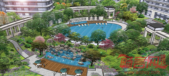 景观设计以“都市流动的风景线”为愿景,旨在打造一个以水为主题的现代、时尚、生态的住宅花园,总体概念取自于自然灵感——海浪,因水而生,因水而兴,因水而美,用亘古不变的律动,营造现代之美。
