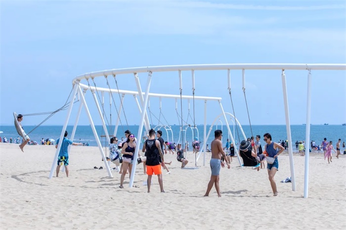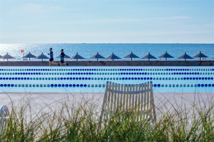 场地位于阿那亚海滩边的ClubMed地中海酒店南侧,随着日渐增多的人流,阿那亚社群氛围满溢,炎炎夏日里,泳池成了海边难得的水上游乐空间,传递着轻松、清凉、阳光的度假体验。