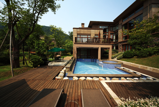 在自然环境的基底下,结合建筑特色,加入自然景观元素,打造环境优美、功能齐全、别具风情的浪漫的湖景森林别墅庭院。利用景观元素,发掘人的感悟能力,增强人与自然的交流。