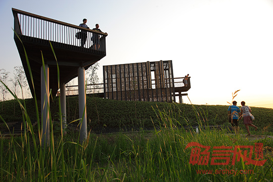 架设于西边过滤池塘之上的空中走廊,通向观光塔。