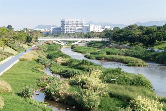 以近自然的手法对茅洲河进行生态修复,为动物营造河道内丰富的生境栖息地,为民众创造出多样化的亲水空间,打造人与动植物和谐共处的都市生命河流修复样板。