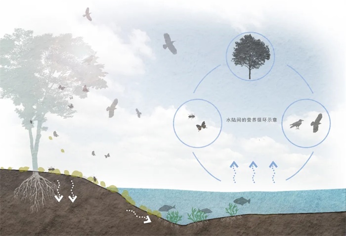 植物的多样性是生态系统稳定的关键因素,我们通过植物的多层次设计助力河道生态修复。品种的选择更侧重于为鸟类提供食物和良好栖息环境的食源植物;花蜜花粉较多、可起到招蜂引蝶的作用的蜜源植物;根系相对发达、可防范土壤流失的固土植物;以及可吸收水体中有害元素、改善水体质量的净水植物。
