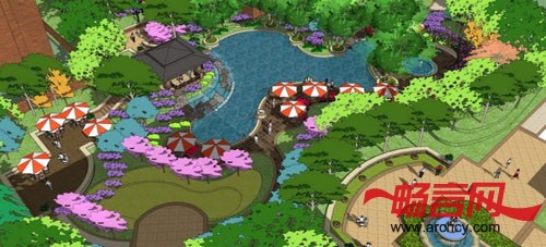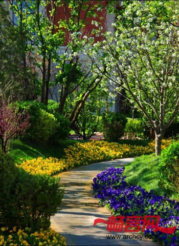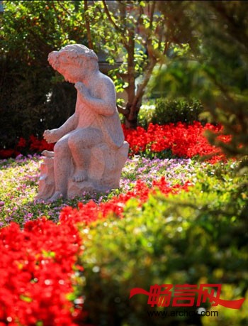项目景观设计本着弗兰克•赖特所推崇的建筑和自然和谐共生的理念,将草原式建筑特色与项目地块特色有机结合,以“漫步密歇根湖畔的香草风情”为主题,形成“园包房”、“房包院”的七重景观格局,将建筑和自然融合,使整个建筑就像从大自然里生长出来一样。运用水系、地形、多层次绿植、小品、铺装等元素充分体现美式田园风格,整体打造自然式庭院,创造自然、高雅的园林氛围,表现了悠闲、舒适、自然的田园生活情趣。