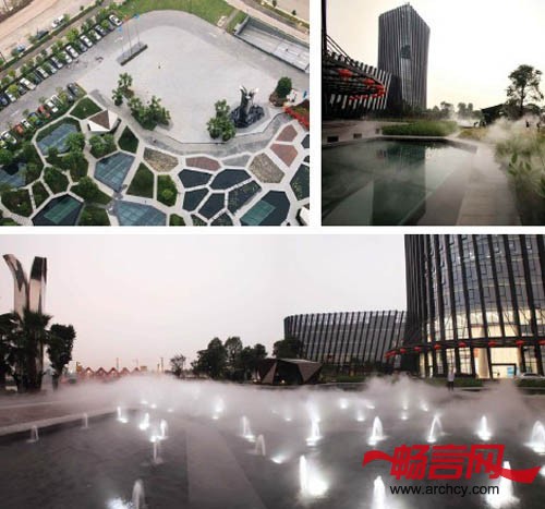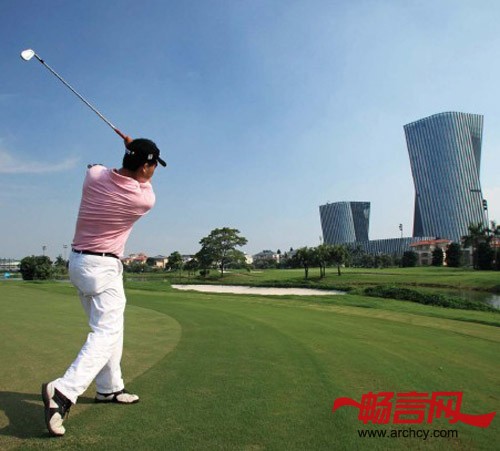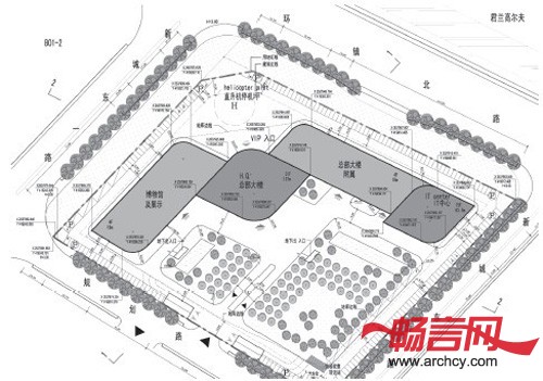在规划方案中,我们将总部大楼置于临街角的地块上,以在两条主要道路的方向上展示总部大楼的形象。美的总部大楼以与道路平行的两翼围合出一内庭院,一高一矮两座塔楼与四层高的群楼一起,构成了错落有致的城市天际线与北侧高尔夫球场取得了视觉上的呼应,体现了美的公司和谐,开放,务实,创新的企业文化。