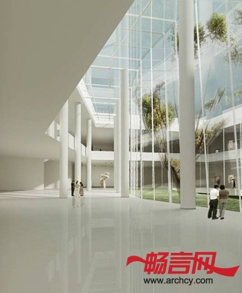 路的两边是不同功能的展厅,需要强调的是,外面的柳树是这个美术馆永久的收藏品和最大的艺术品,因此,每个展厅的端头都隆重地亮出了树林,与其说收藏了柳树,还不如说是这片树林收藏了这个美术馆及这里所发生的一切。建筑的中心大帐40000立方面的空间是美术馆的中心,满足东方集团的很多大型文化活动的举办。