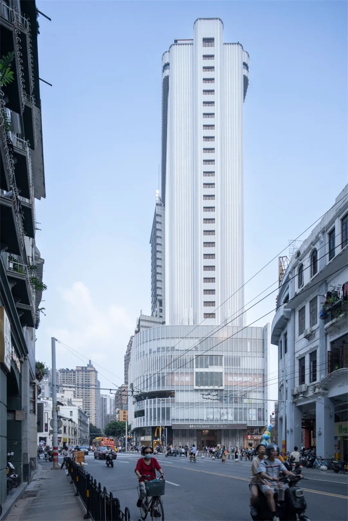 建筑现状为30层,裙楼6层部分为商业、楼上酒店;改造上保留建筑特色及本地文化基因的同时,通过重构内部空间及动线,打造垂直立体化的岭南意蕴“街梯式”户外空间,构建“多首层”商业,集合潮流零售、场景式体验、新生活方式艺术展览、社交活动为一体采用“商业“+"艺术”+“场景”结合的新商业模式,延续广州潮流文化基因,打造新一代青年新生活方式聚场。