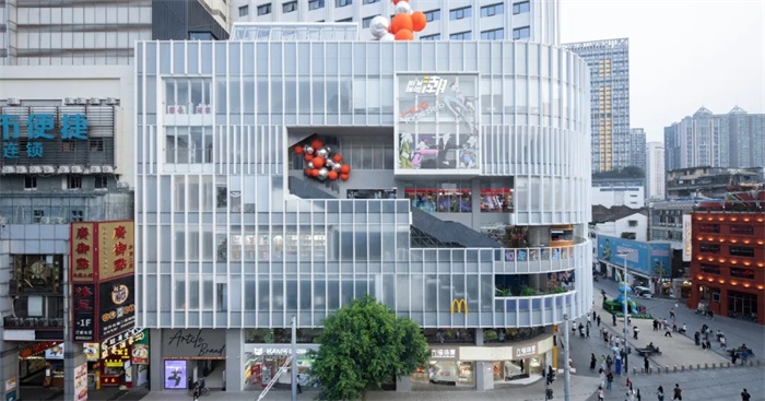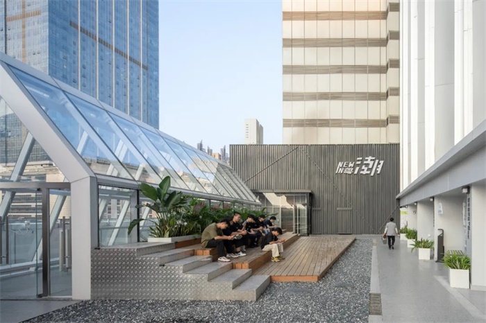 室内结合新型 ANTI-MALL 的概念,打造一个青年文化乌托邦的目的性集合地,建立一个围绕“衣+食+乐+知”的买手式乌托邦休闲商业社区,策展型零售与场景化的商业空间,区别于传统格子铺式的商业业态,以消费体验为核心,弱化铺位边界,强调空间的整体体验。