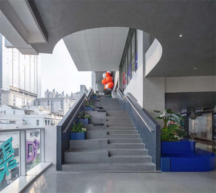 外立面的骑楼街梯,将北京路平面铺开的骑楼文化岭南风情搬入垂直且多层的商业空间,形成独特的视觉设计。因粤·潮楼 NEW IN 的门牌号码是182号,打造了「182骑楼街梯」。骑楼街梯还能根据活动主题随时变身成街梯美术馆、街梯客厅、街梯花园。
