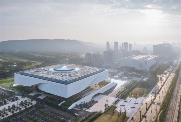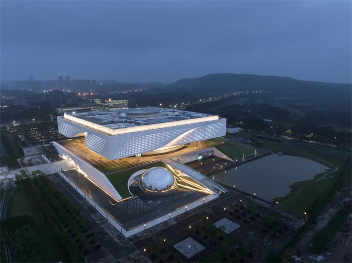 “悬浮”于“自然地形”上的展览空间、成为了这个城市性、展览性建筑物的本体,既具科技美感又蕴含人文气息。