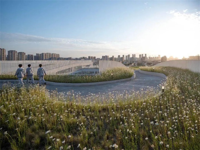 宁波市惠贞高级中学(暂名)除了配备标准400米跑道田径场、花园餐厅、多功能音乐厅、体育馆等常规设施外,还创造性地将生态环保理念融入到建筑景观之中,建造出了惠贞森林、天台音乐厅、屋顶思想漫步道、阳光宣誓台等独特的景观空间,有效地拓展和延伸了学生的学习娱乐空间,未来将给学生提供的一个集“学、乐、思、创”于一体、寓教于乐、寓教于景的优质教育氛围。