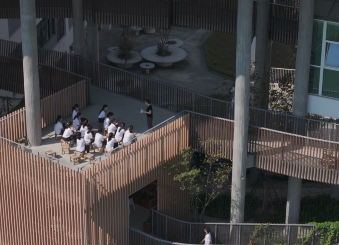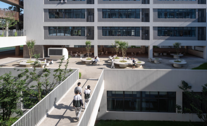2019年,马迪着手为宁波惠贞高级中学设计新校园。他发现,现在的校园虽然都很漂亮,但背后都遵循四个字“效率至上”。短短的课间10分钟,孩子们根本来不及跑到操场上活动,只能在狭小的走廊、教室里逗留,无聊地从一栋教学楼望向另一座教学楼。