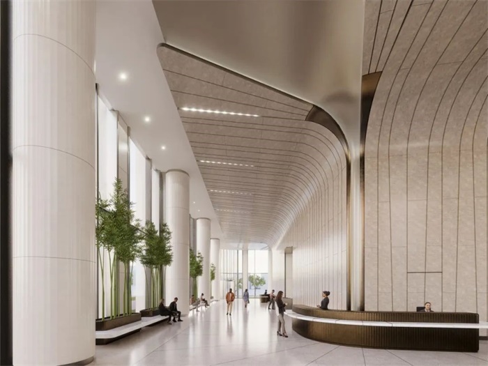 台泥杭州公亮大楼的设计也从公亮先生所喜欢的中国京剧水袖和书法艺术中获取灵感。俯瞰钱塘江,这座建筑沿着天际线脱颖而出,其层叠的玻璃立面模仿了书法家的笔触。该设计体现了“流动”一词,塔楼弯曲的玻璃立面在底部向外延伸,在裙楼上方形成了一个天幕。