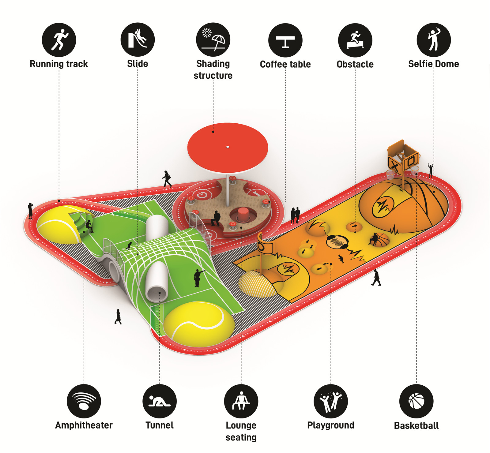 将运动理解为一种体育娱乐,或在闲暇时间进行的任何形式的体育活动,以休闲和娱乐为目的,而不是仅为运动员提供高性能体育设施,我们相信通过在公共空间设计超越传统体育设施空间规范的娱乐设施,可以在更广泛的社会群体中培养更健康的生活方式。