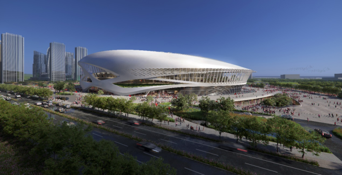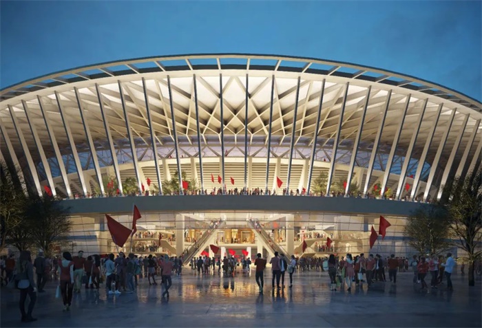 作为可以承办洲际赛事的国内最大的专业足球场之一,展现了建筑的标志性与广州的地域性。建筑曲线流畅交错,展现了赛场的速度与力量,传达出广东在百舸争流新格局下赛龙夺锦的拼搏精神。