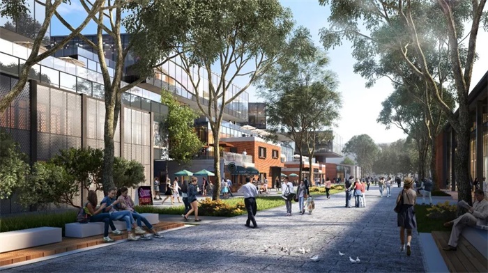 设计将北泡南北地块统一考虑设计,设计了一条以北京国际设计周永久会址为中心的环状绿化景观带,南地块与北侧二期建筑采用外界面整齐,内界面打散的设计手法,与位于视觉中心的展览馆形成良好的城市空间互动,展馆入口前的下沉广场与东侧沿铜牛东路的公共创新活力带无缝衔接,未来将会成为整个张家湾小镇启动区毯式街区的重要节点。