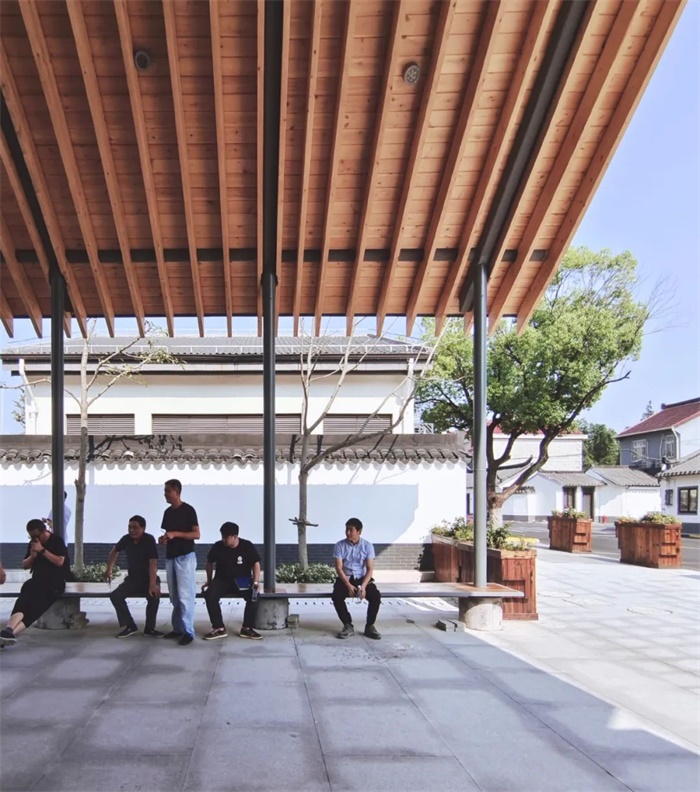 有别于传统展览建筑的围合封闭,新建展馆相对自由开放,为老城厢市民提供休憩、遮荫、演绎、会友等多功能活动场所。在西南角设置市民驿站,串联在主展览流线之中,吸纳城市活力,丰富和提升使用体验。