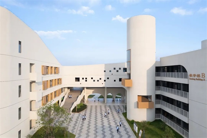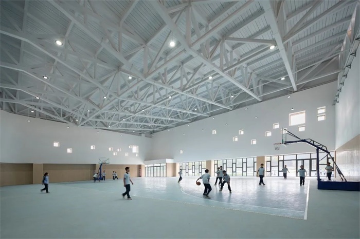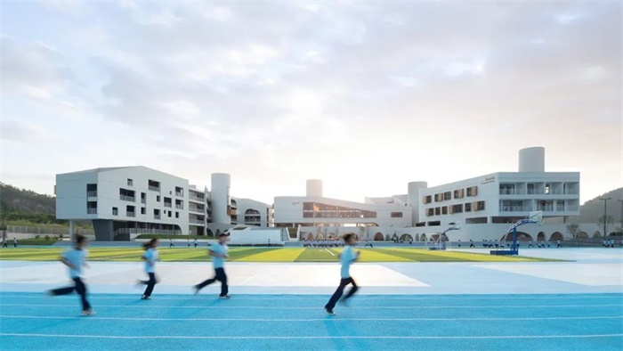 惠阳紧邻深圳,但这座学校的单方造价不到同期深圳中小学的三分之二。在设计之初,我们制定了几个应对低成本的设计策略。如低限度的使用异形或曲线;不用任何昂贵的结构和构造做法;在满足通风采光的前提下控制窗墙比,减少窗的面积;不做不必要的装饰元素,不依赖材料品质和精美细节,用纯空间形体叙事等等。