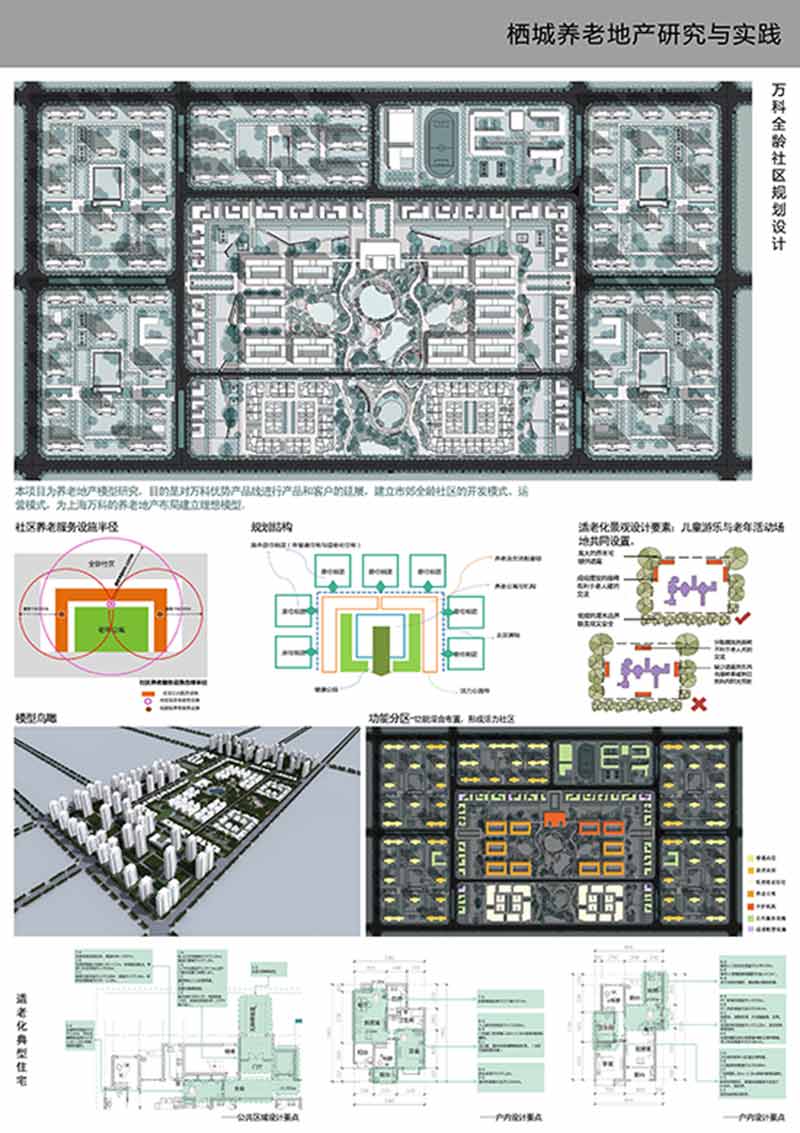 本项目为养老主题研究, 目的是在万科优势产品线上延展产品链和客户群,建立郊区大盘全龄社区的开发模式,生活模式,持有物业的运营模式和商业模式,为上海万科的养老地产布局建立理想模型。