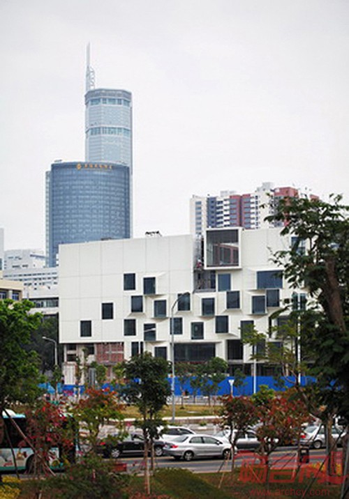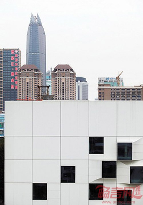 项目基地位于深圳市华强北片区的西北角。20世纪80年代中期,这片曾是以生产电子、通讯电器产品为主的工业区。而深圳城市的飞速发展,已经使这个区域从工业区转型为繁华的超级电子交易商圈。项目基地上原有的工业厂房,因其单调陈旧的建筑形式,早已成为与该区飞速发展不相符的残留物。规划部门希望保留此片区原有的肌理,对原有厂房采取改造而不是拆除的策略。该项目投资方是家高端服装品牌设计公司,考虑到基地所处的优越地理位置具有极大的商业潜力,决定将其改造为设计酒店,希望建筑师能给酒店做出特殊定位,体现前卫、时尚、独特的企业精神。