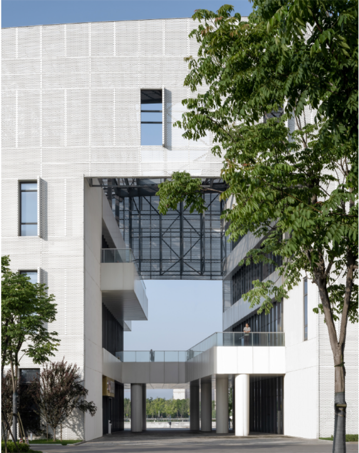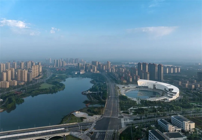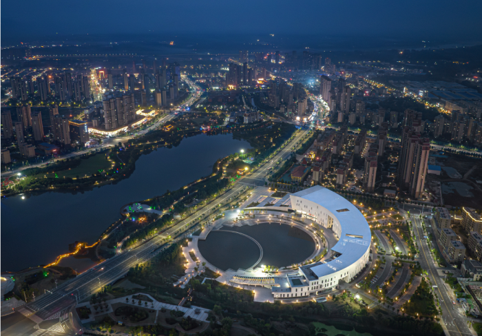 六安市叶集区文化中心位于安徽省六安市叶集区未名湖湖畔北侧,项目总建筑面积为25 886 m²,包含影剧院、图书馆、文化馆、规划馆、青少年活动中心等功能空间。