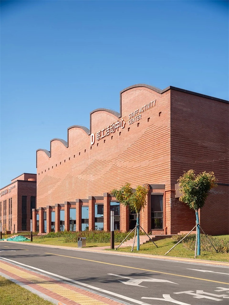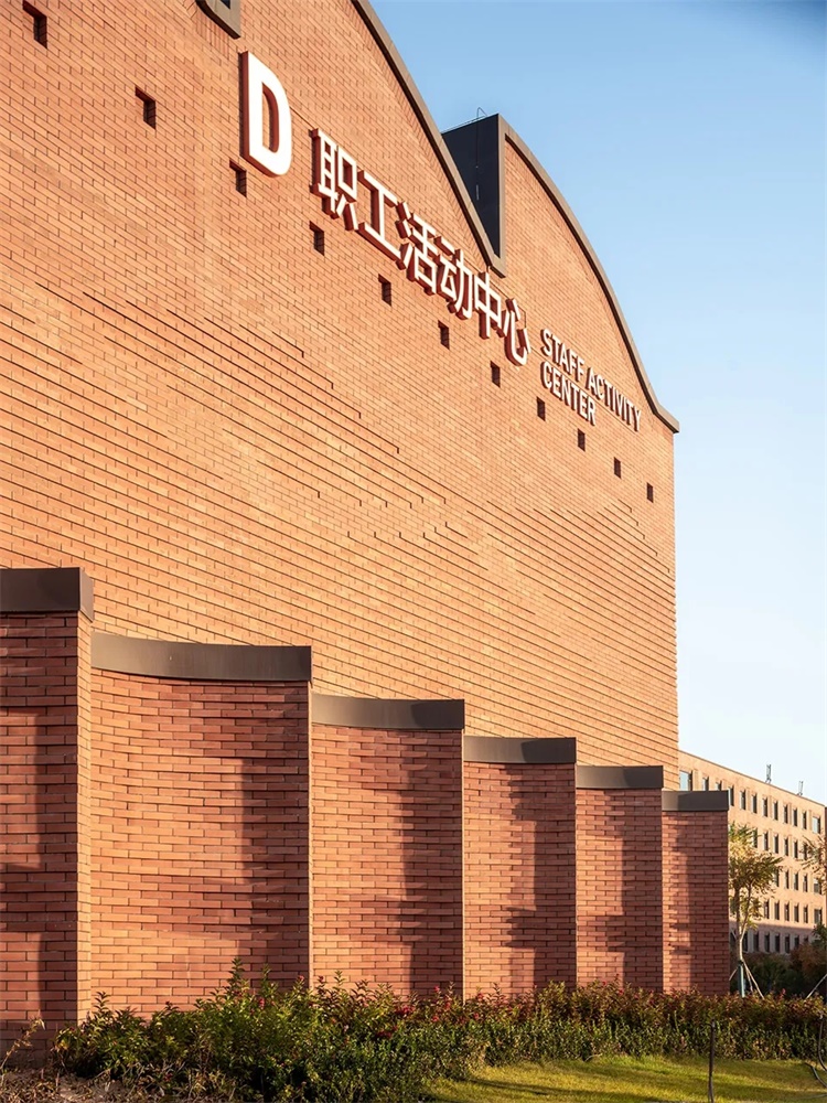 项目用地被周边的工业建筑包围。我们希望厂前区的建筑能够与周边的工业建筑相协调,融入整个工业园。这种风格上的统一并非是简单地采用与周边工业建筑完全相同的建筑形式,而是力图使建筑符合人们对于工业建筑的心理预期,来实现建筑的融入。