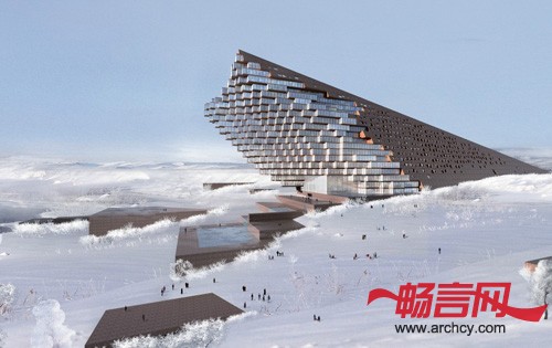 使用简洁并附有力量感的建筑形式,使其区别于自然的肌理,从而确立建筑在场地中的标识性。