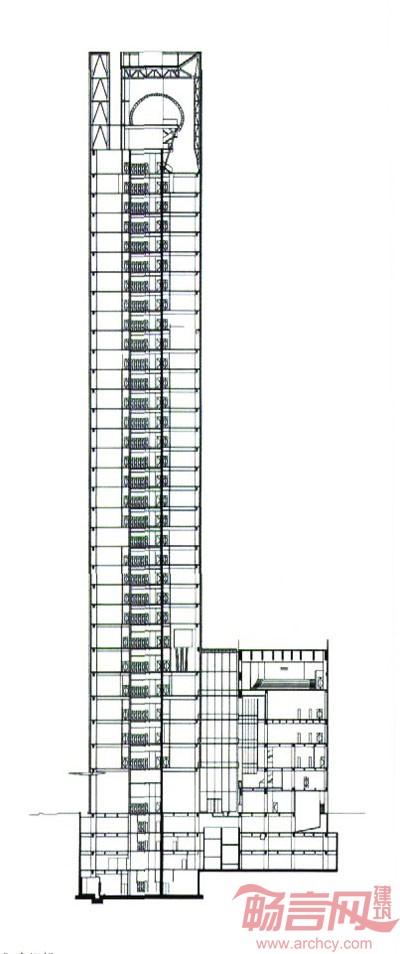 深圳这座新兴城市的众多高层建筑不乏大胆创意之作,从市民中心引出的中轴线西侧,城市图书馆和江苏大厦已经形成一种关于“切角”和“折面”的良好拓扑关系。而作为东侧的起始建筑,地铁大厦另辟蹊径,用比较纯粹的几何造型呈现为一幢看似保守的新地标。建筑师的用意是回归一种简洁的手法去重塑城市界面的内在逻辑。