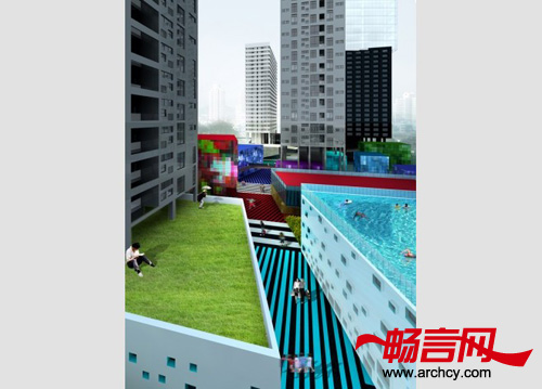 基地为武汉当代国际花园最后一块待开发地块,开发模式采用总部基地办公模式与SOHO办公模式相结合,填补金融港与基地周边区域产业缝隙。运用强势的规划逻辑来规范规划设计,确保项目风格统一、浑然一体。如同“三明治”空间一样的片层式规划逻辑,使得在有限空间内能够“高密度”的置入最多功能内容和最大精彩城市生活,充分容纳未来不断变化的可能性,表达了微缩现代都市的城市主张。在场地中间加入连接北向办公组团景观轴与南向道路的中央步行大道,延伸北向景观轴线,串连各条状空间。为顺应生活的复杂性和多样性,置入各种功能与尺寸的空间,制造社区活力。引入景观生态条带,改变自然与城市隔离的状态,与城市功能空间相交织、叠加,制造出“移步换景”的空间效果。建筑塔楼功能主要为总部基地办公与SOHO办公模式,建筑设计策略呼应了新型生活方式。
