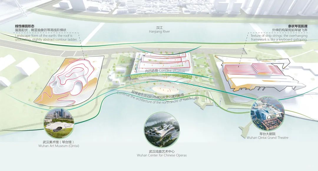 由武汉市文化和旅游局、武汉市自然资源和规划局、武汉文化旅游集团有限公司主办,武汉市规划编审中心承办的武汉戏曲艺术中心建筑设计方案征集,经过两轮专家评审及综合评定,中合股份+AUD+Preston Scott Cohen提交的设计方案最终入围。