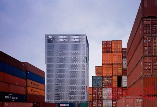 不同于在林立于城市中心区的摩天楼,招商海运大厦建于深圳市南山区招商局前海湾3.5平方公里的物流园区内,位于整个兴建集装箱堆场的东南角,预计十年之内周围场地都将处于建设之中。海风卷起灰尘弥漫其间,环境状况不佳。周边大尺度厂房、堆砌的集装箱、机械吊装设备、急速驶过的货柜车,无一不诉说着一种工业流程式的生活空间。