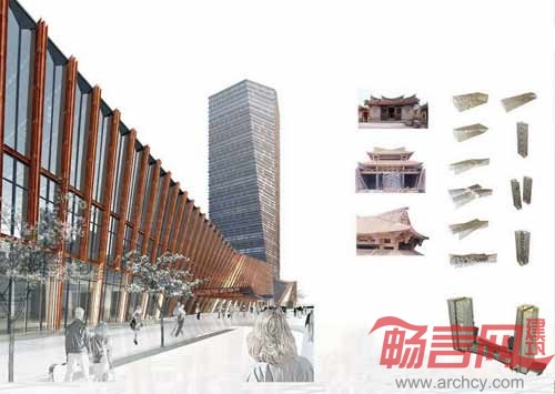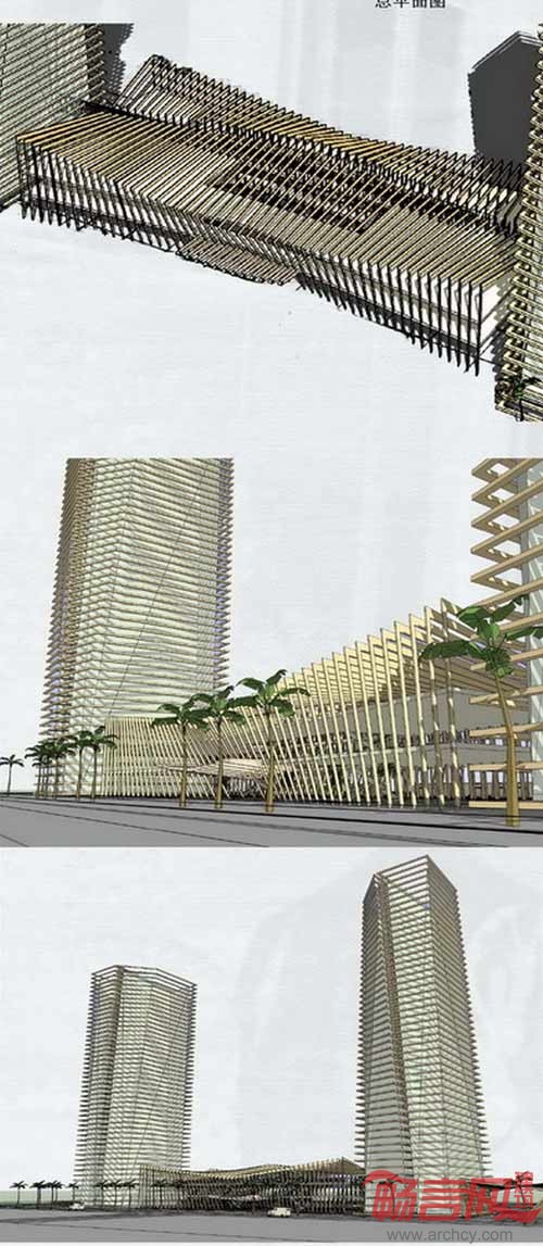中国古代建筑独特之处,就是擅于运用曲线达到美的效果,古建筑的屋顶在纵向和横向上略呈凹曲面,即“双曲面”。这样做,使建筑显得轻快而美观,柔和而又韵律感,表现出很强的艺术性。将中国传统木建筑的屋顶架构进行提炼、简化形成具有韵律感的排架,扭曲变形产生双曲效果,再运用不同方式组合,殊途同归,再现闽南传统建筑特有的起翘屋顶形式。