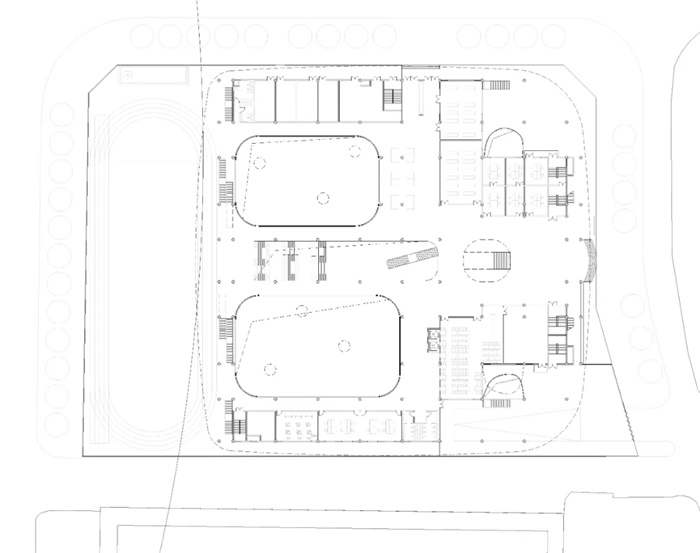 它像一个风雨操场,同学们可以在任何天气状况下,在这里锻炼、活动、玩耍;它还是一个开放的教室,老师们可以在这里授课、演示,同学们也可以在此自习、讨论。这个场所不但使学生体验户外又不必下楼成为可能,还提供了走出教室进行班级之间交流的机会。因此,这一系列没有被单一功能定义的半室外建筑空间恰恰构成了学校的社区中心微型广场。