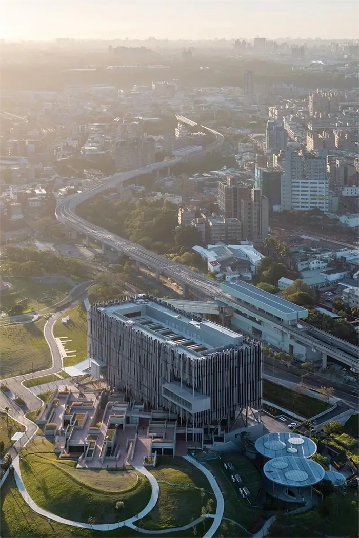 新北市艺术博物馆坐落于莺歌河与大汉溪交汇处。此地地势平缓,北面为龟仑山,南面则可眺望大汉溪与雪山山脉。设计灵感源自该地区丰富的历史与文化,设计团队在该项目中融入了砖砌建筑的古朴韵味以及摇曳生姿的芦苇等元素,打造出了一个现代且富有前瞻性的建筑形态。