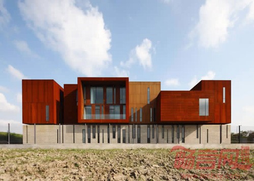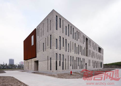 这是嘉定新城区燃气公司自用的管理办公楼。建筑基地西临嘉定新城区最主要的一条南北干道,南侧和东侧是两块尚未建设的荒地,北侧则是一条小河,河对岸的马路后面是一块绿地。建筑的形态完全是对基地环境的回应,建筑功能里特殊的一些房间如会议室等以特别的形态从建筑方形的体量中游离出来,呈现朝向北侧风景的态势,而这些房间的日照则通过游离之后所出现的小小的内庭院间隙来获取,这些小间隙同时为这个不大的建筑塑造了一个不同一般的内部环境,建筑内部空间由此产生节奏感。