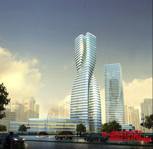 交投宾馆及办公楼建筑立面的变化是融合建筑景观视线需求和内部功能的结果。建筑面朝白石湖方向开窗面积逐渐增大,同时创造出立面垂直方向上虚实韵律变化。建筑形体也试图打破高层设计竖向设计的单一性,建立竖向流动性,力图创造建筑功能和空间在垂直方向上的变化。