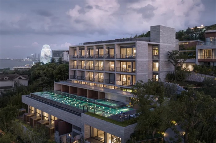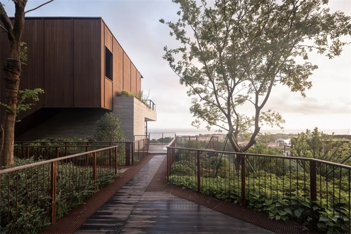 最后,通过屋顶绿化、垂直绿化、景观庭院、补植新林等方式,让建筑包裹于绿植之中,达到建筑与自然共生。