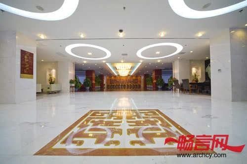 主要材料:雅士白大理石、卡拉拉防滑地砖、柚木饰面板、茶色镜面不锈钢、仿雕漆玻璃钢