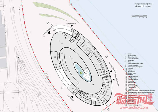 在这风景优美,人流集中的场所。我们要做一个现代的、与城市融合的博物馆。博物馆不再是单独以展览功能曾在,而是城市公共空间的一部分,为全体市民提供休闲聚会和交流的公共场所。