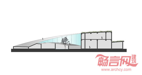 2、外部:大多数人来此的目的不是参观展品,而是约上三两好友,来观光、来聚会、来休憩。他们不需要进入博物馆内部,可以利用循环上下的屋顶空间能达到露台上,享受绿化、阳光、海风、享受自然,享受人与人之间短暂的重逢。