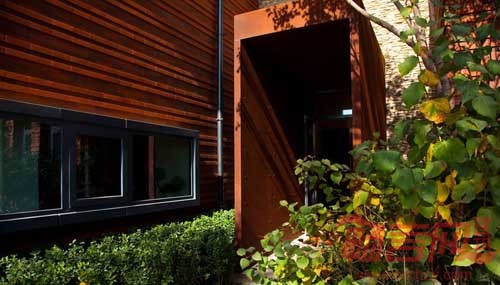 “每一种材料有自己的语言……每一种材料有自己的故事。”售楼中心尊重天然材料的特质,选用了天然感较强的红砖、文化石、锈板、以及室外防腐木作为主要装饰材料,富有原始风貌的材质体现出崇尚自然、尊重环境的理念。